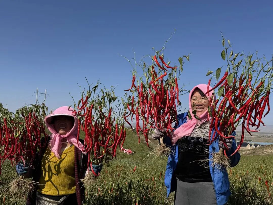 金秋时节,靖远县东升镇的辣椒种植基地里一派繁忙景象。火红的辣椒缀满枝头,空气中弥漫着淡淡的椒香,工人们穿梭田间采摘、装筐,满载辣椒的货车驶向全国各地。