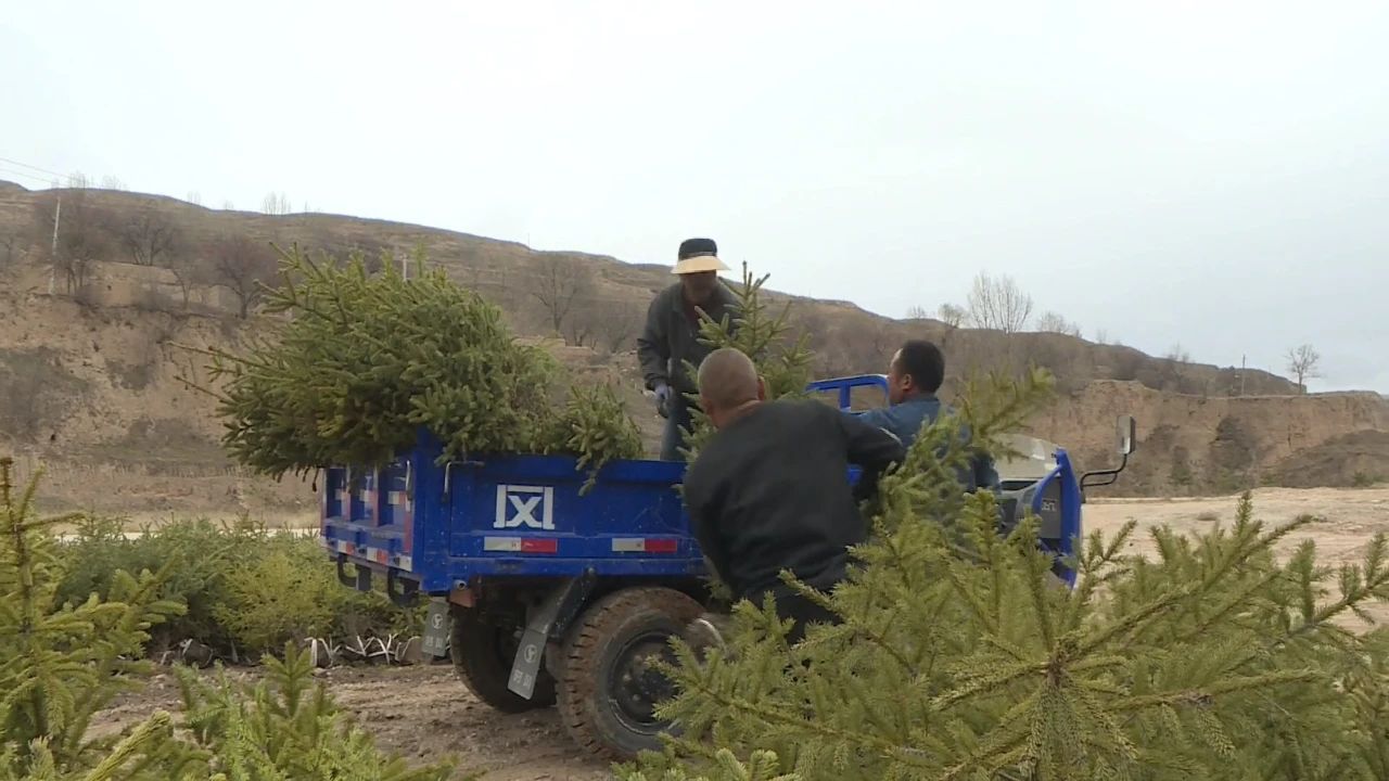 我们选择的品种是云杉树,耐旱,成长起来后风景也比较美观。我们现在抢抓时间,招收当地农民,到我们这儿来栽树,由于部分土壤比较坚硬,人工没有办法挖,让机械来挖。我们正加班加点调配树苗,尽快在四月把树全部种完。