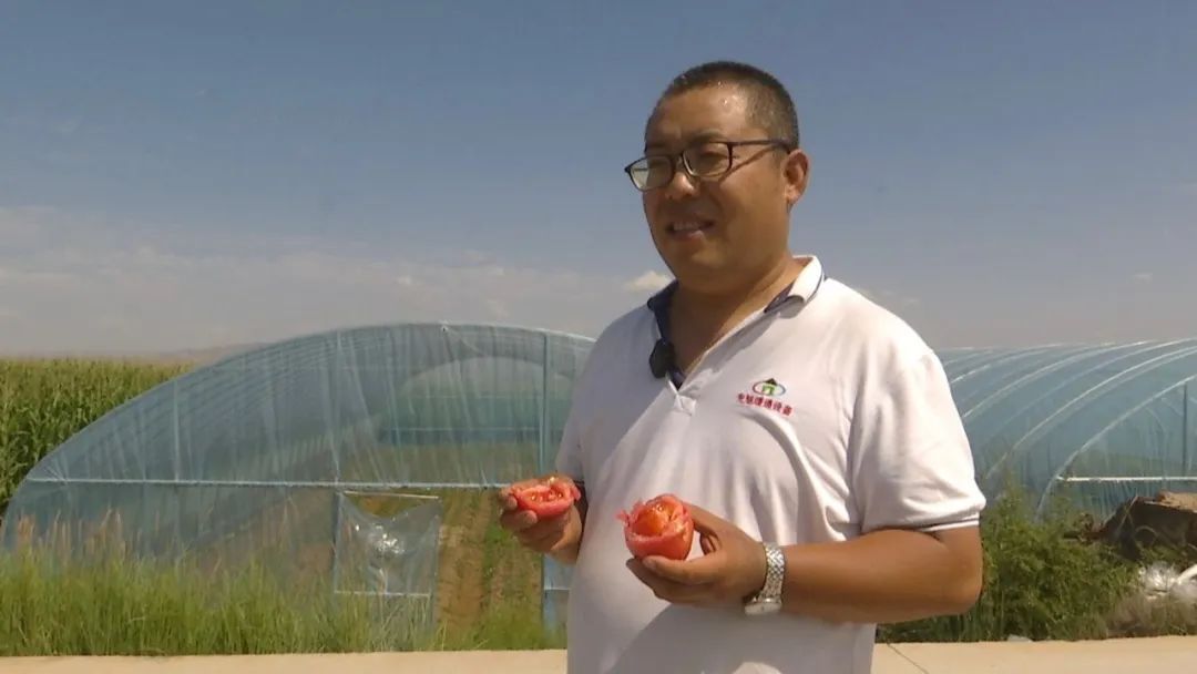 【游客 王成祥】我今天顺路过来,看到咱们这种了西红柿,棚里面的西红柿好得很,我向老板要了两个,吃了一下,果肉掰开特别好,你看,甜得很,就给娃买一箱子。