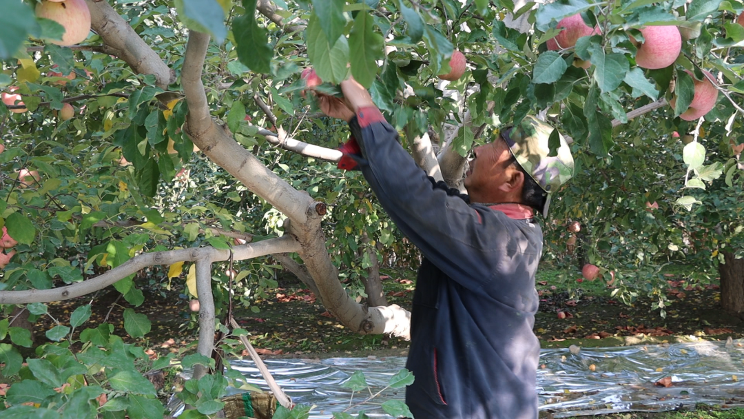 【李奋林 民乐村种植户】我今年总共种了三亩地,连套袋的果子加光果,产量在15000斤左右,今年苹果价格比往年好,套袋的苹果价格最少在2.8元一斤。