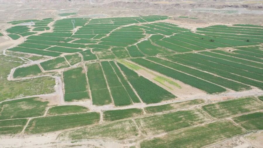 在芦阳镇十里村高标准农田项目区,连片庄稼长势喜人。现代化的滴灌设施在田垄间有序分布,水源通过管网精准输送到每一株作物的根部。