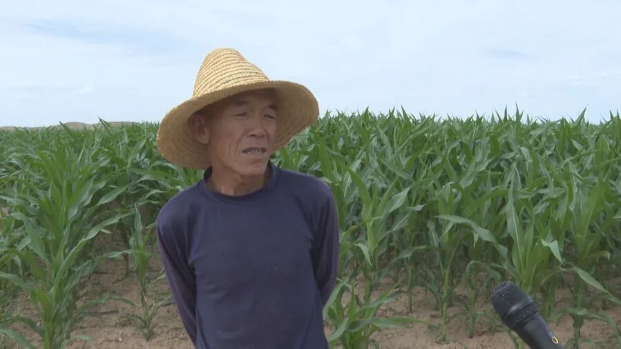 从今年的长势来说,要比往年的长势好得很多,今年这个苞谷你看,一是均匀,二是颜色长得比较齐,基本上和好地平衡着呢。
