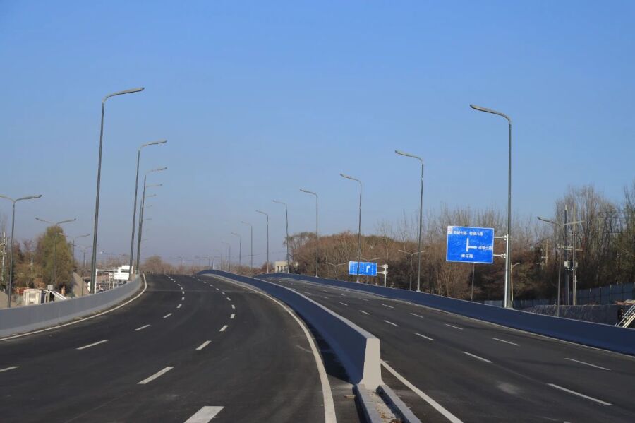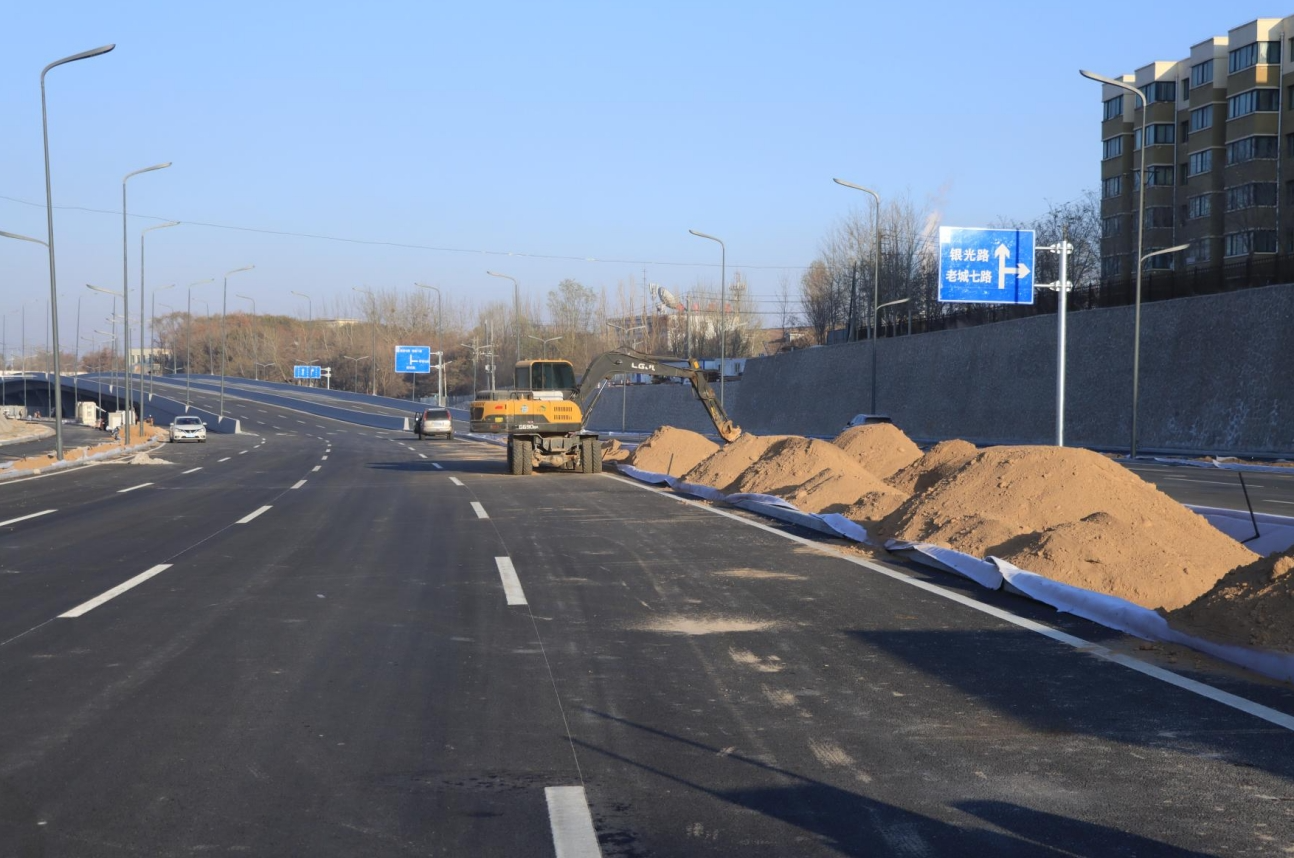 据悉,该项目建设内容包含道路工程、桥梁工程、交通工程、排水工程、照明工程和绿化景观工程,已完成工程内容的98%。目前正在进行路灯调试和交安标线完善,计划近期组织分项验收,待通过市政、交警部门验收后予以通车。