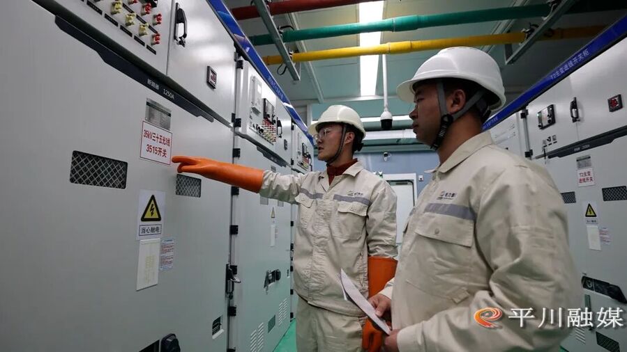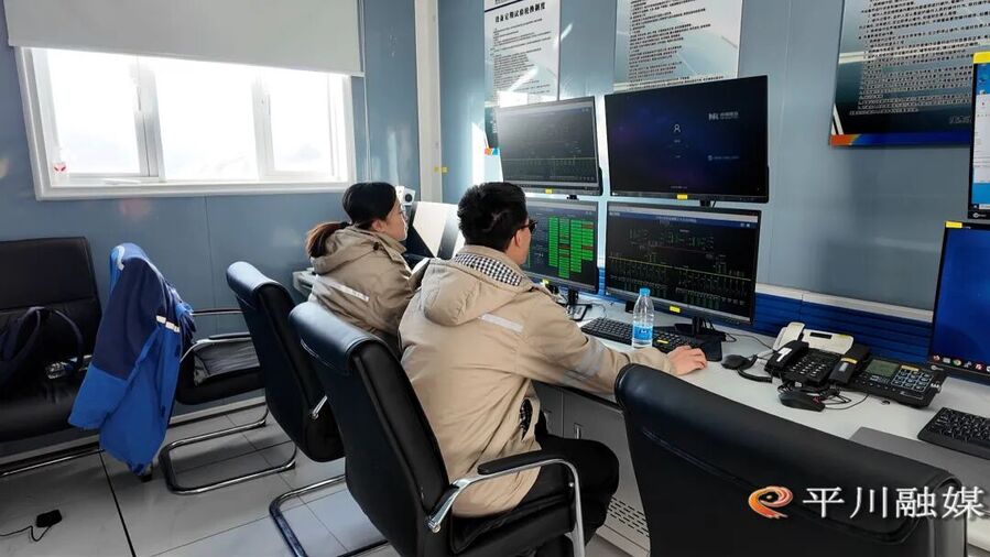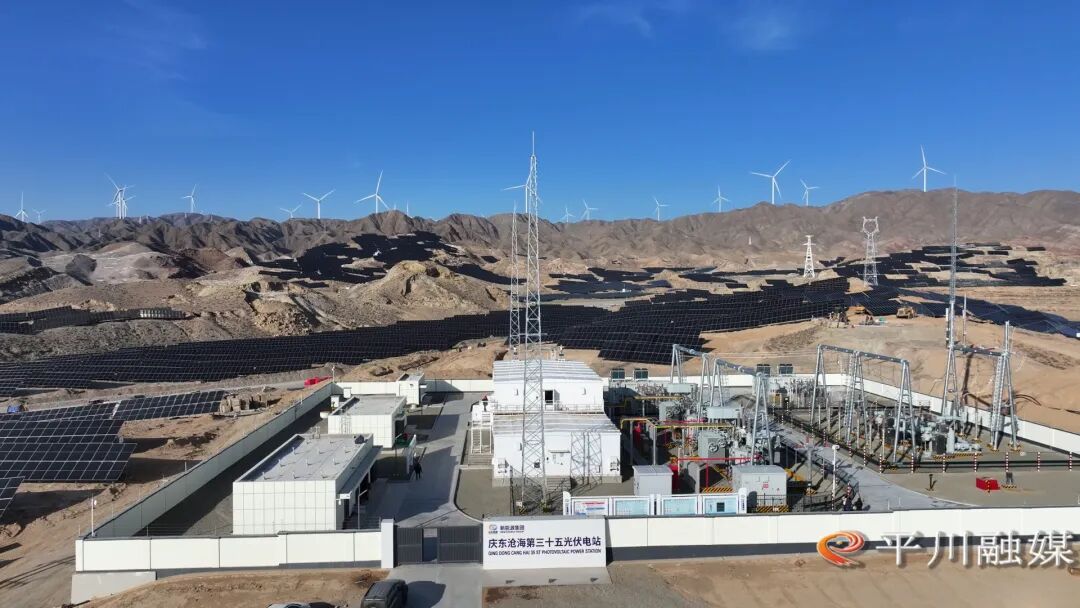 在平川宝积光伏发电项目现场,气温已跌至零度以下,广袤山地上,一排排光伏板支架整齐排布,与蓝天相映成景。升压站内设备指示灯规律闪烁,巡检机器人无声滑行,技术人员专注记录各项数据,收尾工序同步高效推进,一派热火朝天的攻坚景象。