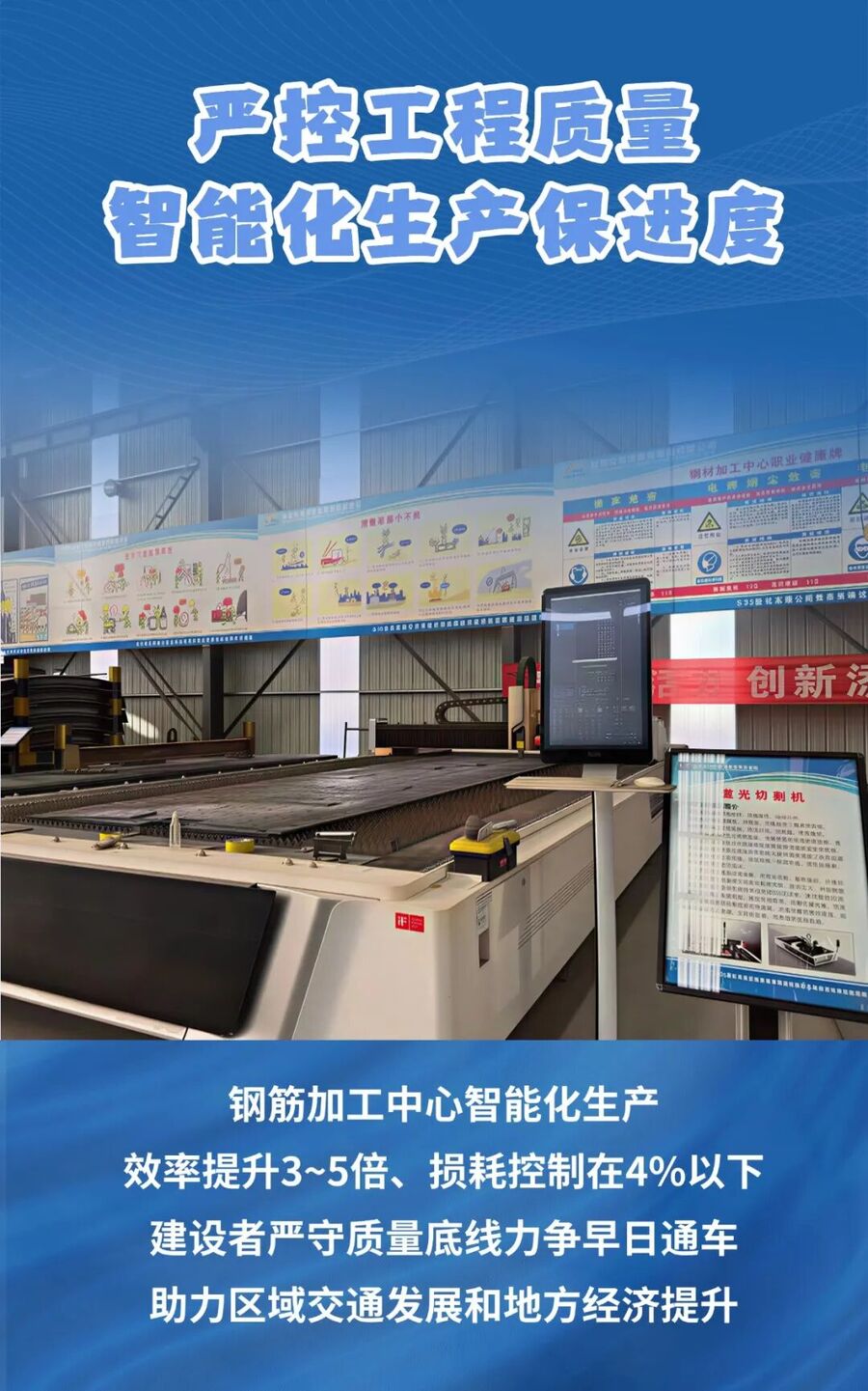 配套的钢材加工中心内,智能化设备高速运转,为隧道施工精准加工钢材半成品。加工中心依托自动化作业,加工效率较传统人工提升3-5倍,钢材损耗率降至4%以下,既保证了加工精度,又大幅提升施工效率。
