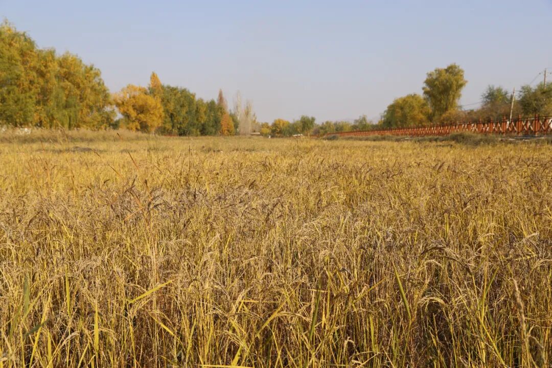 【李宏 靖远县北湾镇高崖村党支部副书记、民乐村水稻种植技术指导】这个地以前种不出来水稻的,今年能种成这样子,这个都好得很。你看这头子(穗子)!这些地要是能治理好,能投资发展。明年我给指导指导,搞得好好的,让游客都过来,在这来参观。