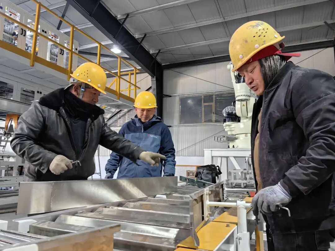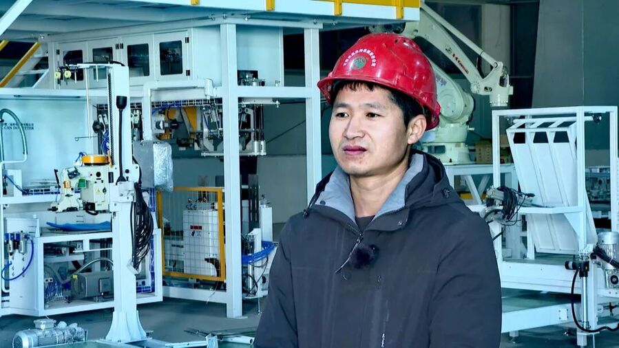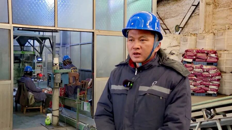 我身后这条线是8月初开始安装,目前即将进入试运行阶段,预计12月初我们进行生产。这条线的生产效率是15吨每小时,比我们现有的那条生产线提升了3倍多。