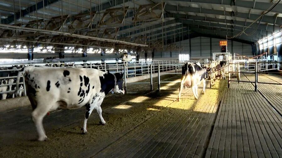 我们为了更好地科学养牛,对每一头牛进行了数字管控,也就是说信息化和智能化,对每一头牛不只是它耳朵上有一个电子耳标,而且每一头牛的脖子上都有一个线圈,这样更好地保护我们每一头牛的健康、挤奶效率、繁殖状况、当日的采食量,这样更好地有助于我们对每一头牛实行实时监控。