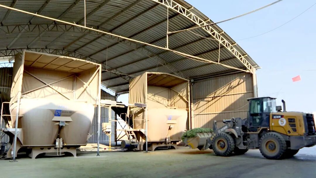 这相当于我们奶牛牧场的“中央厨房”,我们以前使用的是人工做料,不仅费时、费人、费工、费力,而且达不到奶牛日粮的制作标准。自从我们上了这个精准饲喂系统以后,它不但节约了人力、人工成本,而且能精准地落地营养师制定的这个配方,给奶牛更好的、适口的日粮。