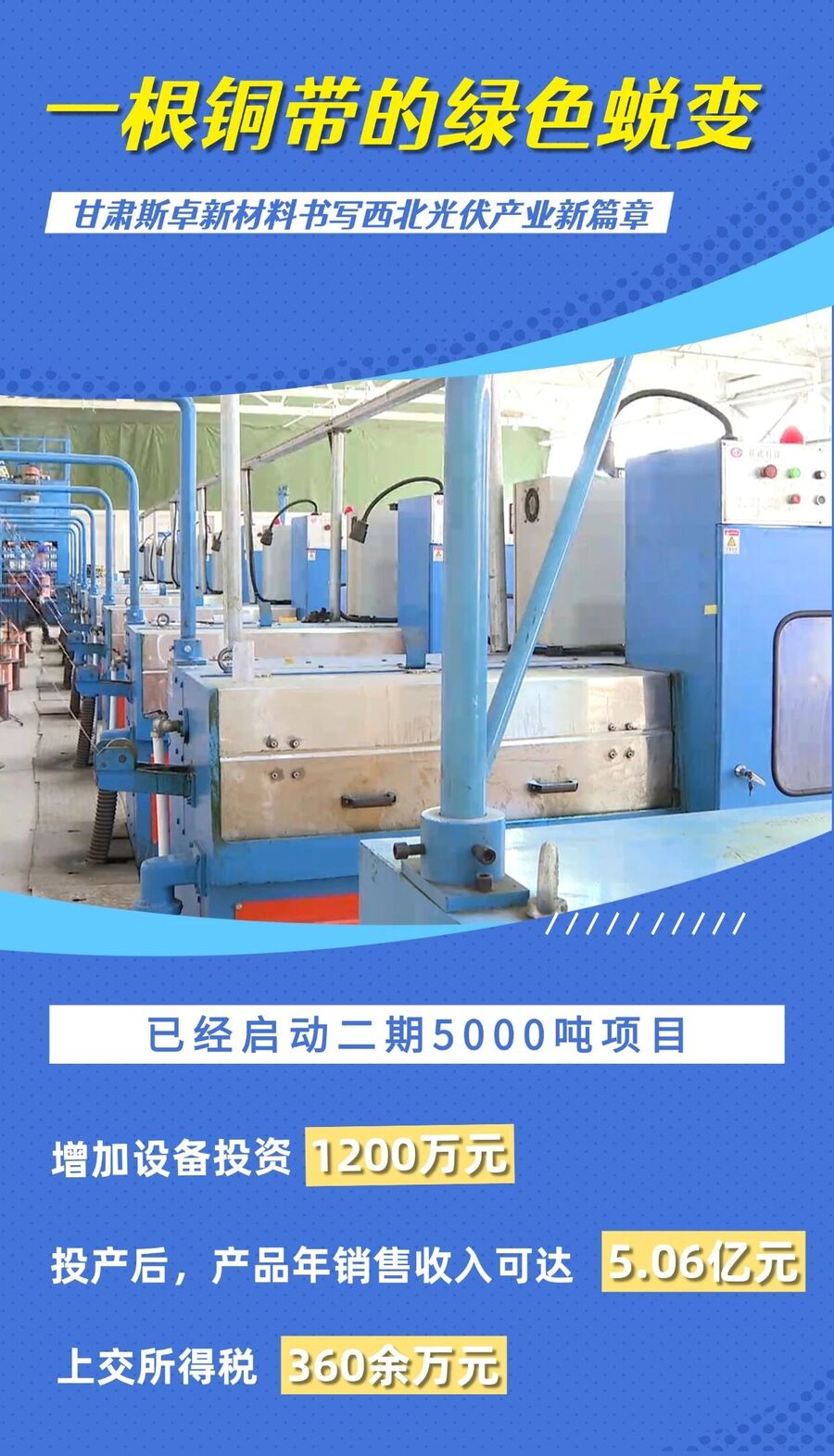 从无到有、从有到强。在绿色发展这条赛道上,甘肃斯卓新材料有限责任公司正以延链、补链、强链为核心发展思路,以创新为笔,以铜带为墨,书写着西北光伏产业发展的新篇章。