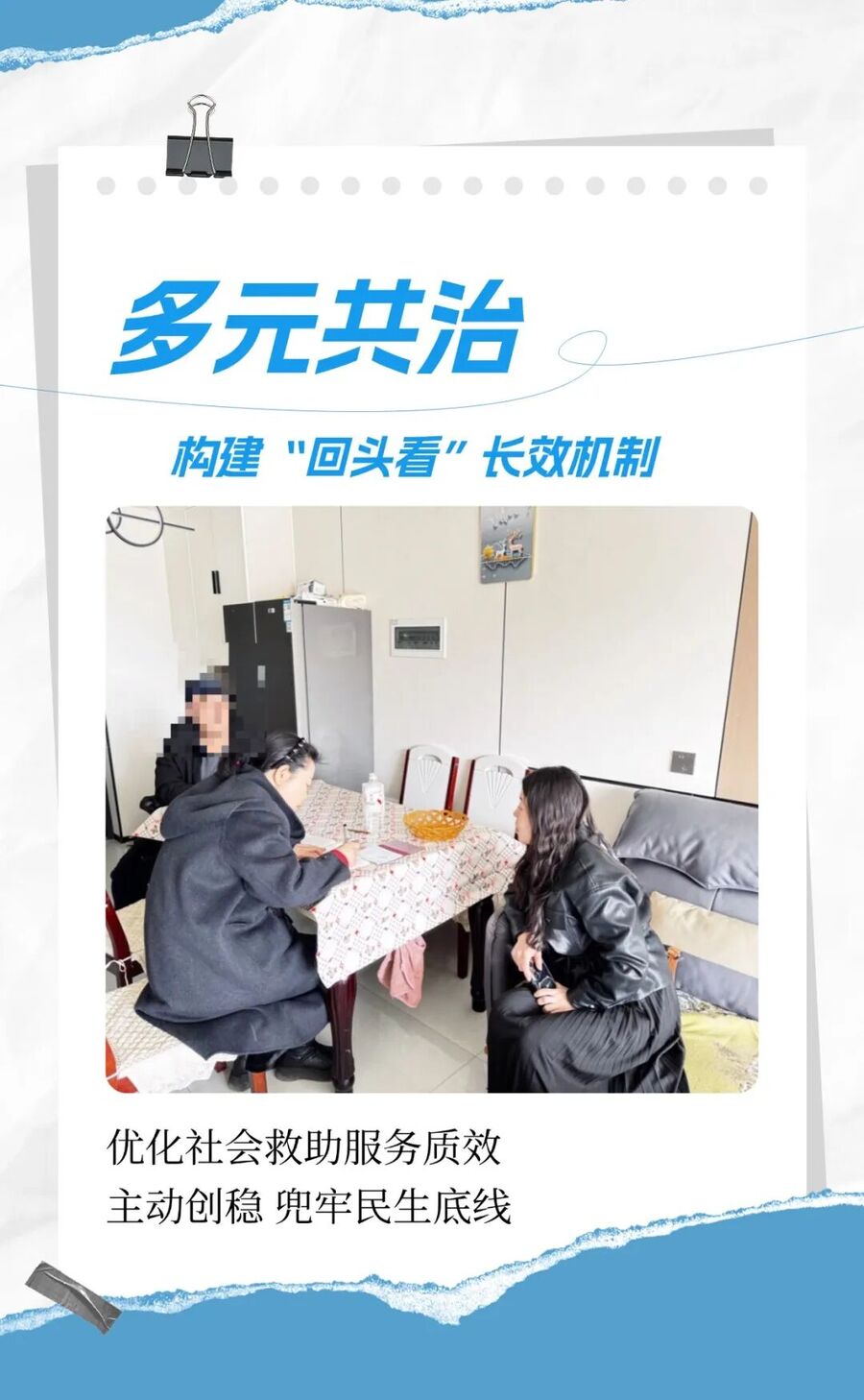 景泰县健全完善走访排查、矛盾化解、回访督导闭环机制,通过常态化“回头看”跟踪问效,持续巩固矛盾化解成果,不断优化社会救助服务质效,兜牢民生底线、化解基层隐患、温暖民心民情。(卢昌来)