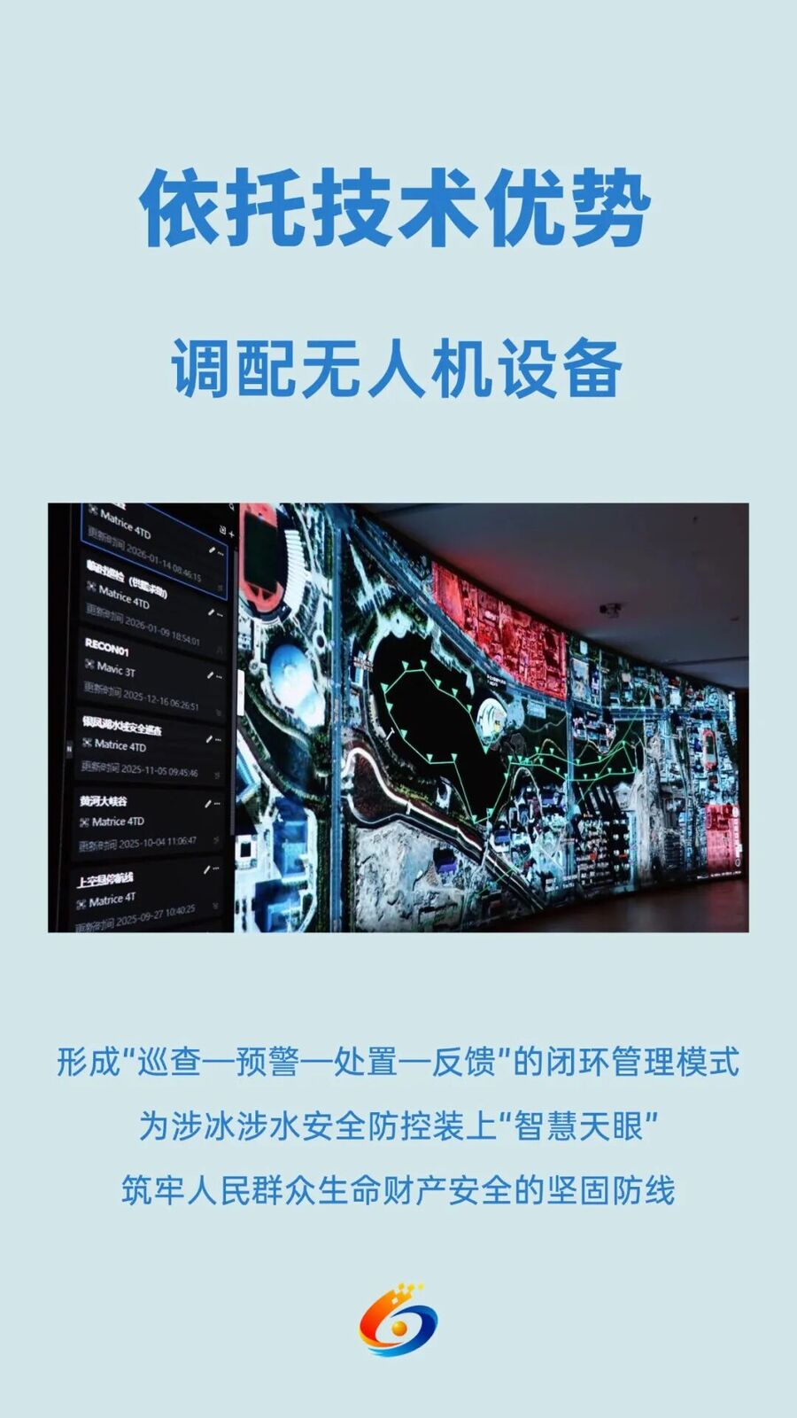入冬以来,气温下降,水域陆续结冰,涉水涉冰安全风险随之攀升。为切实筑牢人民群众安全防线,白银区多部门联动协同发力,构建“人防+技防”的立体防护体系,通过空中智慧巡查、地面联合排查、隐患闭环整治等举措,全方位织密冬季涉水涉冰安全防护网。