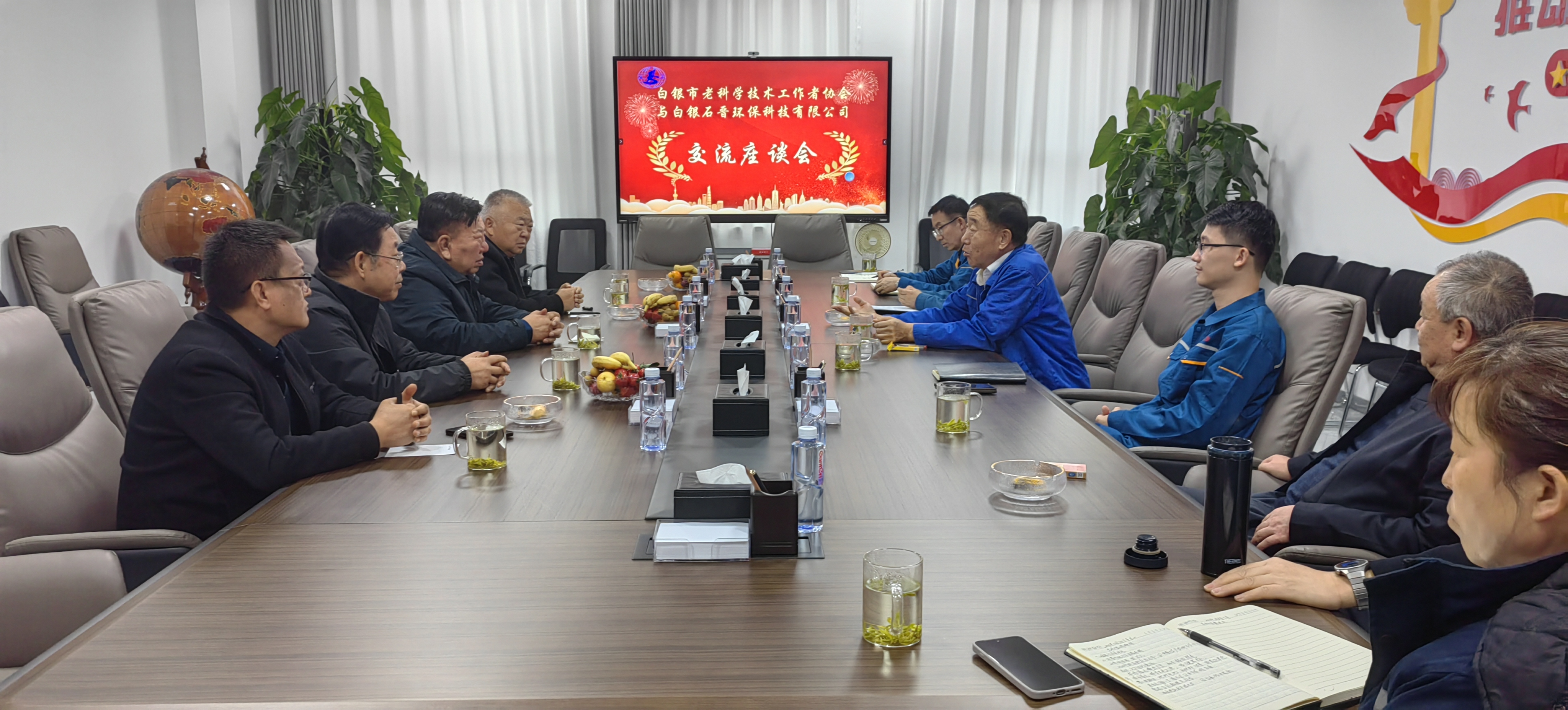 调研结束后,市老科协与石晋环保科技有限公司科技创新基地召开交流座谈会,围绕基地建设成效复盘、产学研协同创新深化路径、产业链延链补链强链举措、绿色低碳技术推广应用等重要议题展开深度研讨。