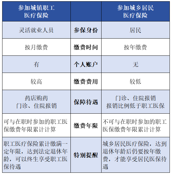 生活中处处充满着意外 天有不测风云 人有悲欢离合 正所谓 身体不好 得靠医保 身体康健 养花遛鸟 医保与我们的生活息息相关 至关重要 今天就让我们聊一聊 没有工作单位 可以这样参保 有工作单位,医保怎么办? 法律依据: 《中华人民共和国社会保险法》第二十三条规定:职工应当参加职工基本医疗保险,由用人单位和职工按照国家规定共同缴纳基本医疗保险费。 无雇工的个体工商户、未在用人单位参加职工基本医疗保险的非全日制从业人员以及其他灵活就业人员可以参加职工基本医疗保险,由个人按照国家规定缴纳基本医疗保险费。 就业后,员工与用人单位就存在劳动关系。用人单位应按规定在用工之日起30日内,给员工缴纳城镇职工医疗保险。 没有工作单位,医保怎么办? 没有工作单位,可自行前往指定银行参加职工医保或就近街道保障中心办理居民医保参保登记。 共有2种选择 不同参保身份,享受医保待遇略不同