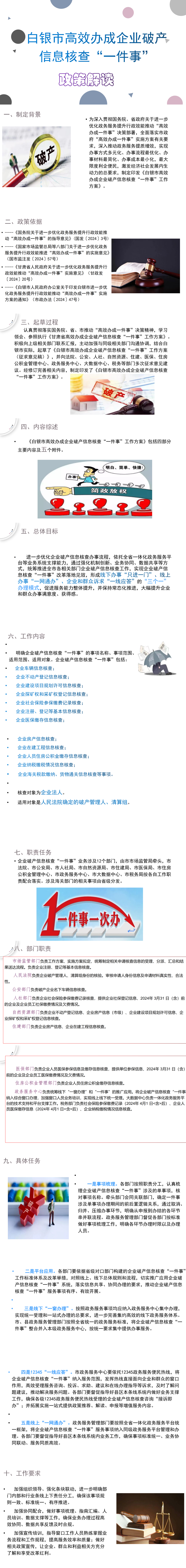 | 《白银市高效办成企业破产信息核查“一件事”》政策解读 | |