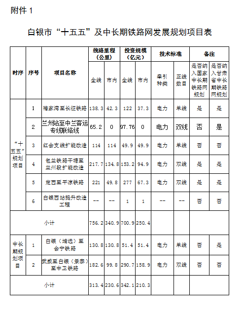 各县、区人民政府,白银高新区管委会,市政府各部门,市属各企事业单位,中央、省在银有关单位: 《白银市“十五五”及中长期铁路网发展规划》已经市政府第102次常务会议审议通过,现印发给你们,请结合实际,认真抓好落实。