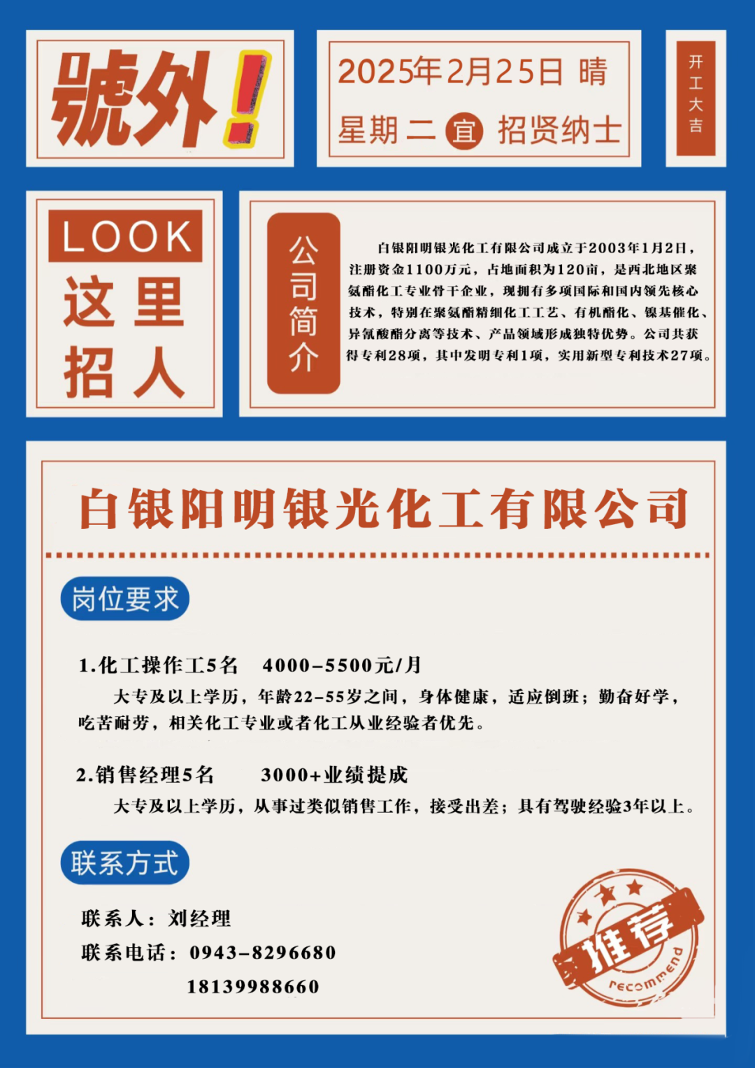 【引“凤”来栖 筑梦高新】白银高新区企业招聘信息(七)